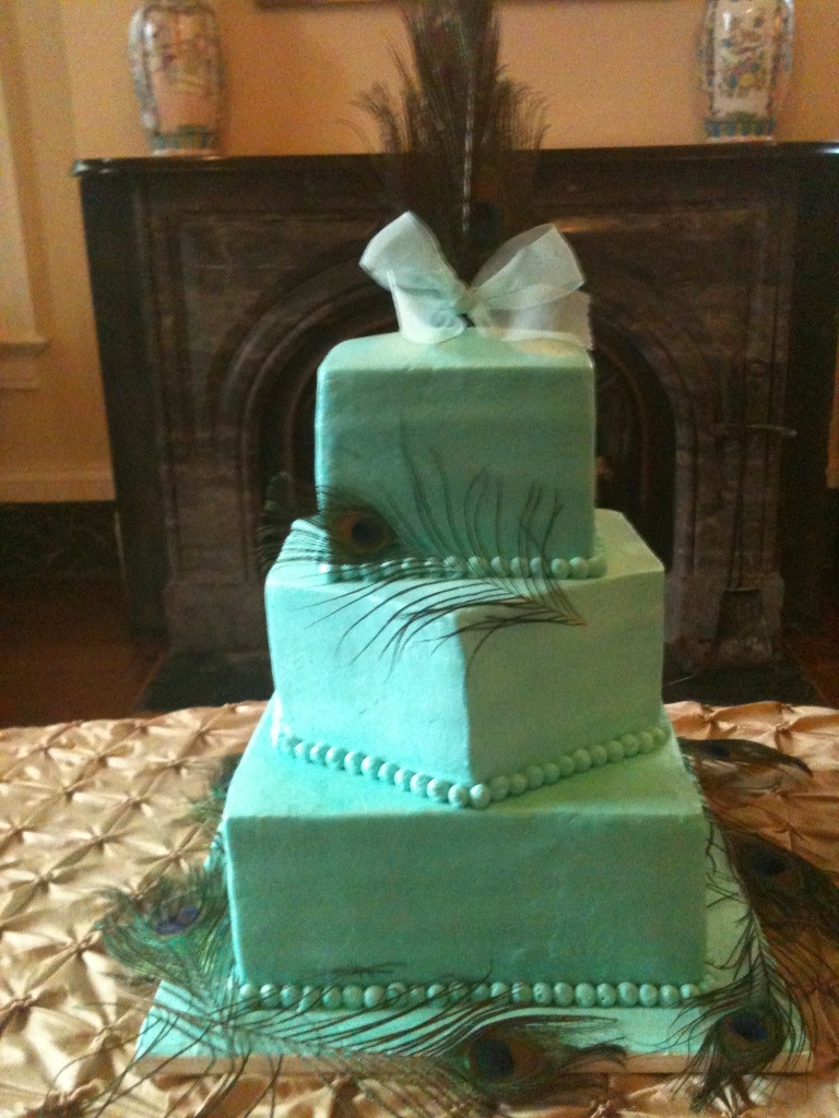 Normally I'm a pretty good "fireman" when it comes to fast fixes to event dilemmas, but when this weekend's cake catastrophe occurred, I had to consult the expert. During my setup time on Friday afternoon for my client's wedding Friday night at the Benachi House and Gardens, another bride was having her rehearsal for her Saturday night wedding. This is common and had been cleared through my bride and through me. The Saturday bride's party was outside practicing their ceremony on the porch. They had a lovely and well-spoken 10 year old flower girl who was the picture of innocence with her lovely, long, red hair. She and I had a charming little chat about what I was doing with a microphone and stand, at the end of which she asked me for the location of the restroom. I gladly directed her inside the house and went about my business. A few hours later, when the groom arrived to take photos, his first comment was "I don't think the bride is going to be happy when she sees that cake." I was shocked, since the cake was exactly how she'd designed, with it's Tiffany blue buttercream icing and decorative peacock feathers. I asked him why he thought she'd be upset and he said "Somebody stuck their fingers in it."